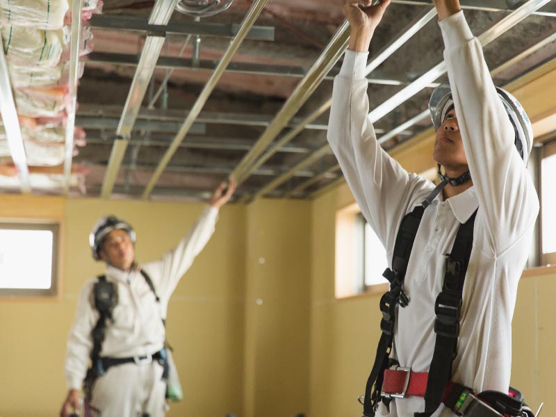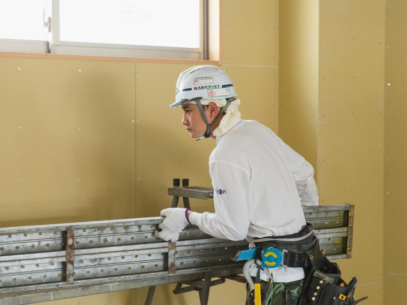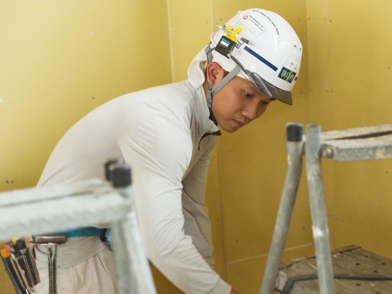 それぞれの専門分野で研修や現場での仕事を通じて技能を習得していきます。そして「1・2級内装仕上施工技能士」「登録内装仕上工事基幹技能者」等の各種資格取得を目指します。